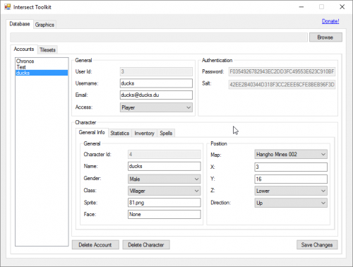 The Intersect Toolkit is a small program that lets you handle various tasks you might want to perform while working on your game. These tasks can range from changing a player's data to making sure your graphics work in the engine.